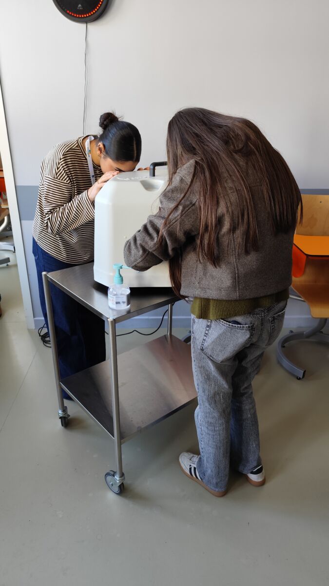 Lisa, étudiante en 1ère année infirmière, teste le kit de vieillissement
