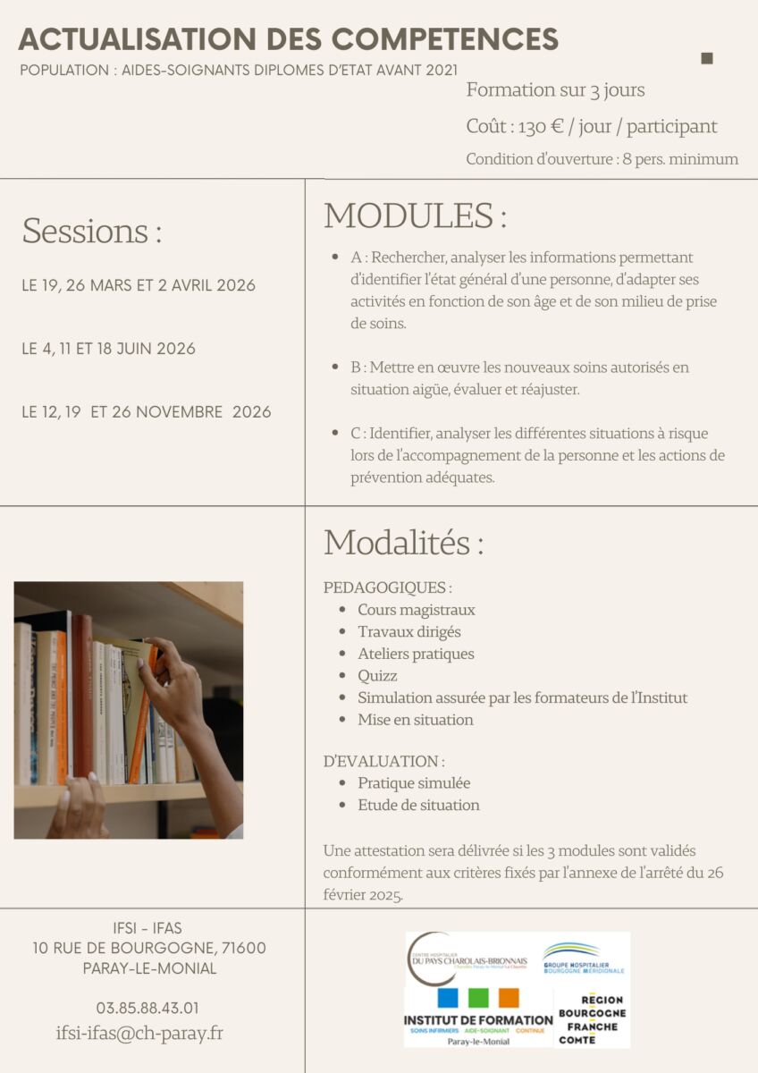 Accueil › Nos formations › Formation continue › Montée en compétences des aides-soignants Montée en compétences des aides-soignants Nos formationsInfirmier Pré-requis Référentiel de formation Formation théorique Formation clinique Résultats Le profil des promotions infirmières Aide soignant Référentiel de formation Formation théorique Formation clinique Évaluation des compétences Résultats Le profil de la promotion aide-soignante Formation continue Tutorat AS Tutorat IDE Montée en compétences des aides-soignants